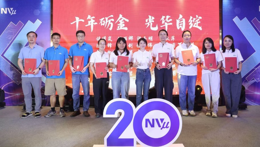 为感恩与公司并肩同行、见证二十年成长的核心力量,本次庆典晚宴特别设置了嘉奖环节。现场为近 40 位在职满十周年及以上的资深员工,隆重颁发荣誉证书,以沉甸甸的认可,致敬他们十余载的坚守与奉献——每一页证书,都镌刻着对他们专业付出的高度肯定。